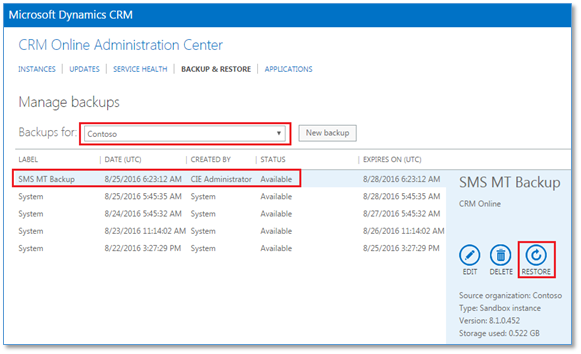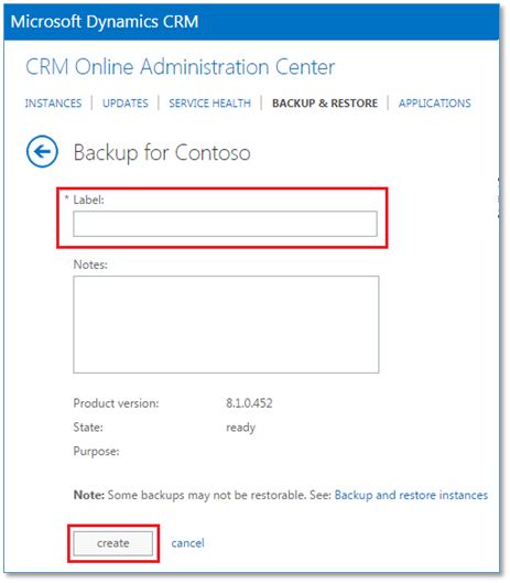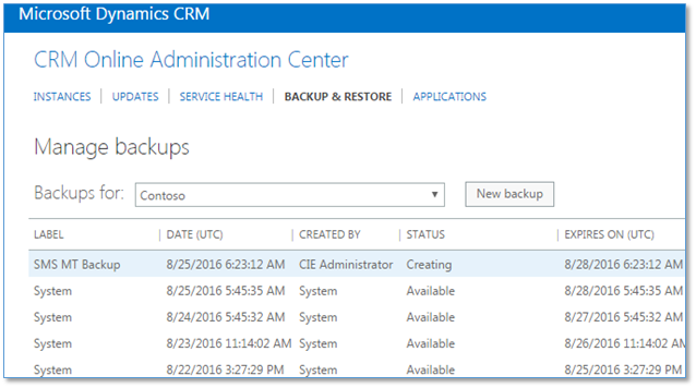 With Microsoft Dynamics CRM Online Update 1, Global Administrators now have a capability to create and restore backup on-demand.